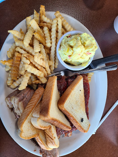 Ā Ā Ā Read moreWent in at around 6pm on sunday. 3 tables were seated. We waited at the door to be seated for at least 4-5 minutes. We get sat down, and didn't see a waitress for another 5 minutes. She dropped off menus and left. Came back 10 minutes later to get our order. Brought our drinks around another 5 minutes later. Food came out 15-20 minutes after that. She didn't bring silverware or the bbq sauce... said she'd be back with it. We waited... and waited.... and waited... I got up and walked to the drink area, where I was ignored for about 2 minutes. At which point she looked at me and I reminded her we needed silverware and bbq sauce. She acknowledged me and said she'd get them. I walk back over and sit down because she finished getting the soda's she was getting instead of our stuff and then walked into the back... My wife and I had time to talk about how crappy the service was and how now our "bucket of beef", which was served piled on a plate, was now literally cold to the touch... We were hungry and ate a sandwich anyway but decided it was time to take it home and reheat it so it'd taste better... Normally, I'd have sent it back, but seeing as how our waitress never even checked on us once, I had to get up and track her down to ask for goto boxes.... another 5 minutes pass before she brings them out, has to go back for another because we barely ate anything and needed a THIRD box... then plops down a check for $46.95! We get up to pay, I walk over to the register where I was told I'd have to wait for my waitress to check me out!! What?!?! No. I will not be back and I will be telling anyone who asks how bad this experience was... Charge me $50 for cold food and...