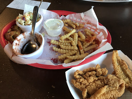 The time it took to get our food was excellent, but what we ate did not meet our expectations. For one, the shrimp basket was barely a shrimp basket. It was mostly made up of fries.The puny, pathetic pieces of shrimp my mother had were like these miniature pieces of popcorn shrimp. For a basket costing that much, the shrimp should have either been plenty or much bigger than that, not have 80% of it be just fries that also had no special taste. My combination plate was pretty much the same. My catfish had no taste, and this was almost $20 bucks. One other thing wrong was that my mother complained about the shrimp being a little too cold, then again, she always likes her stuff steaming hot.