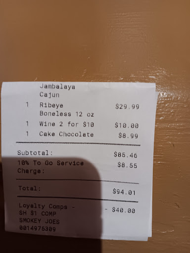 I've actually been to Smokey Joe's many times, so my opinion covers a number of experiences. Yes, service is spotty, inconsistent. Even with breakfast, when I was one of only a few customers in the restaurant, it has taken an inordinate amount of time just to try to get a coffee refill. Yes, my server came around to my table three times to ask if I needed more coffee, then disappeared only to return later and ask if I needed more coffee, without bringing me more coffee. This cycle occurred three times before I actually GOT more coffee. Asking if I needed more coffee was apparently more concerning to my server than actually GIVING me more coffee. Food is hit-and-miss. The one that is repeatedly sub par is the hamburgers. Dry, chewy, with all the flavor of a shoe box. I imagine the meat is prepared at the buffet next door, kept in a warming bin, then thrown on the grill to reheat when ordered. Cooking to order is pointless. To be fair, I have encountered some very attentive servers, some with very entertaining personalities. But sadly, these events pale in comparison to the generally questionable service received over time. I haven't noticed any real significant improvement or changes over the years, so I'm assuming that management is not all that interested in actually acting on feedback such as this. One other clue about that is noticing that the owner comments are repetitive, cut-and-paste responses with none of them offering any form of actual compensation for poor food or service. I'd at least be content if they would start by making a...