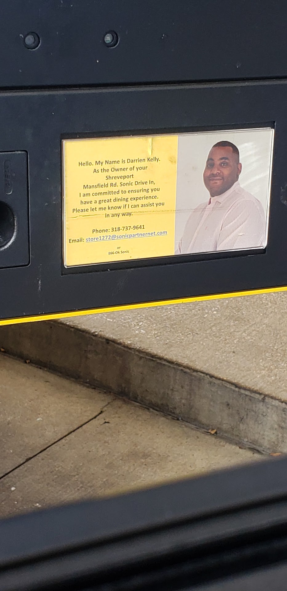 Read moreI am visiting from another state and I stopped in to get a small blast and a drink, unfortunately the ice cream machine was down and apparently the system. I seen them have to turn away business because of this, some of the customers were rude and annoyed, but the car hop kept his composure and was very polite. I can't remember what his name was but he wore skates and was a short colored man. He was the only carhop I seen and the business appeared to be very short handed. The carhop was very apologetic and refunded my money from ordering on the app. I sat in my car for a few minutes taking care of some business before hitting the road again and googling the next nearest sonic, when the carhop came out and brought me my drink. I was so thankful that I didn't have to fight traffic again to get a drink. I will totally recommend this business in the future and will be back while I'm...