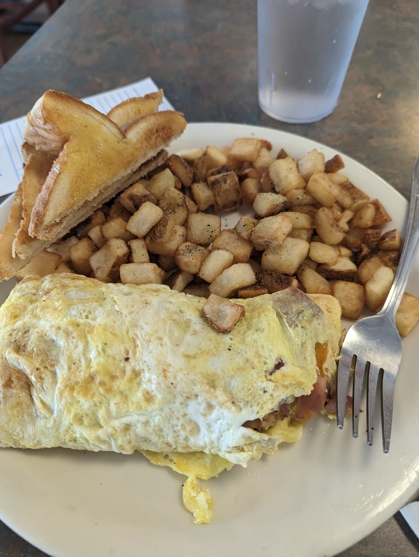 It's a staple in the community, and you can know exactly what it's like by any diner in any movie. The only difference would be smoking inside, which is no longer allowed for many years now. Walking into this place always makes me feel like I'm in an old movie, they close at 3:00 p.m. And they open... I want to say at 6:00 a.m. they have daily specials for each of the days of the week, printed on the menu, and innumerable variations of breakfast items you can combine in any way you want. Plenty of entrees like chicken, fried steak and pork chops, as well as a whole slew of burgers, and your standard drink list. The clientele is mostly of a retirement age, and yet the time it takes to order, receive the food, eat it, and leave is probably one of the shortest in the city. There's only typically two, maybe three at most waitresses and it's a small area for the dining. Everyone basically knows everyone by name, so there's a homey feeling to the restaurant , becoming more like your aunt's dining room. There are a lot of police officers that frequent This establishment, take that whichever way you take it. I'd do recommend this place, though. You should be foreigned that it's standard food at reasonable prices with quick service. So it's not five star meals. But the quality is Good, it's not pre-frozen pre-packaged nonsense. And the quantity of the meal is large as I'm typically walking out with a to-go box as a 250 lb 6 ft tall 32-year-old dude. And that's just from a bacon cheeseburger and fries. Oh and try the...