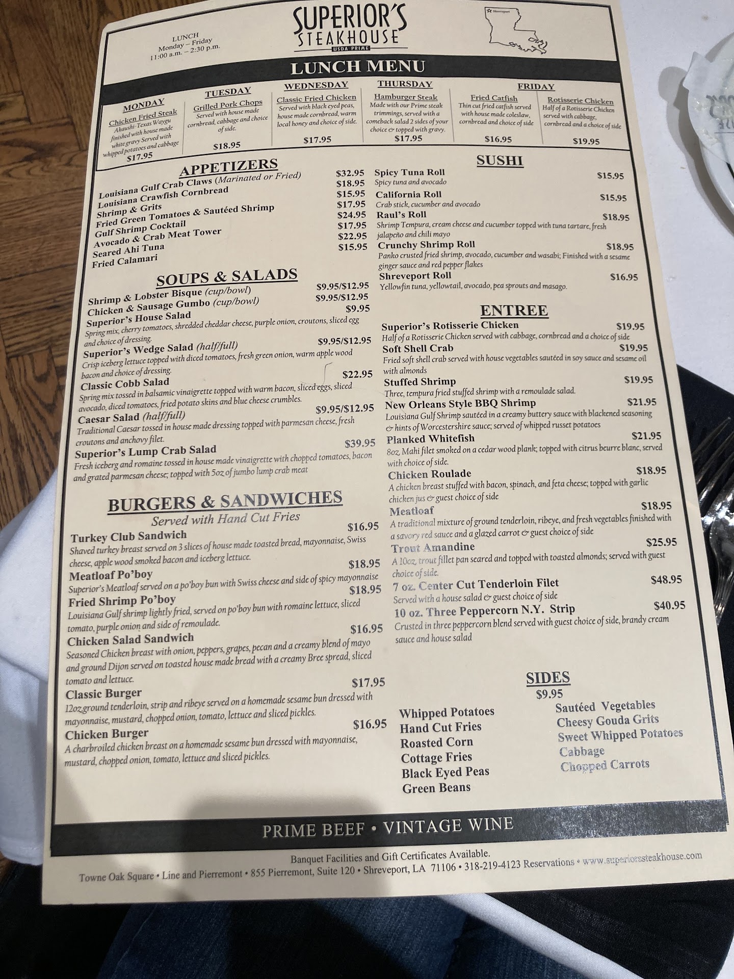 I think superior is more presentation than anything and it certainly lives up to that in spades. The food is good but certainly not top shelf. If you wanted a nice romantic evening you can't ask for much more. If you want great food and deserts go to Longhorn and pay...