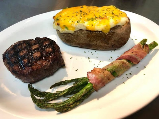 Absolutely a hidden gem!! Let me start by telling you about the bread.. BEST BREAD EVER! It was a small loaf of freshly baked bread, cut crisscross, buttered, and topped with something similar to "everything bagel" spice, but better! Then came my wedge salad. I don't even like salad and I took it to-go when I left because the dressing was divine! The dressing, I don't know what he called it, was creamy and heavily peppered. 10/10 I had the burger. It was cooked to perfection, the cheese was perfect, and the bun was so fresh! The fries were great too! My bf had the steak. It was buttery, perfectly cooked, and so flavorful. Perfect!! And the pièce de résistance was the au gratin potatoes that came as a side. Besides my dear grandmother's, these were the best au gratin potatoes EVERRR. The restaurant was cozy, only a few booths and hidden off to the side of the bar. Despite being kind of inside the bar, there was no bar noise and the candlelight made it cozy and romantic. The service was spectacular. This may be my new favorite restaurant in Shreveport!! 10/10 on everything!