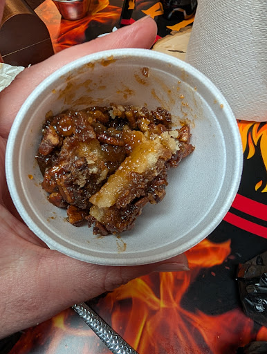 The food: Ordered a single meat brisket. And a four meat with all meats. Both had the Mac n cheese, cornbread, then corn and baked beans. The brisket: moist and looks almost greasy at first. Very very fatty (maybe I got bad cuts) and very very thin cut. The sauce that comes with it tastes like sweet baby rays (shout out Zuckerberg) which distracted from the flavor the brisket had. Flavor of the brisket was centralized to the outter blackening so it was limited with each bite due to slice sizes. The chicken(?) was dry, sausage was good, the pork lacked flavor. The corn was good, just a basic grilled corn. The corn bread is a bit dry and heavily buttered/greased. I genuinely enjoyed it. The baked beans were heavily peppered. Like, I couldn't taste the baked beans sauce without it being overwhelmed with pepper taste. The Mac and cheese is like any box white cheddar except they added some sort of chili crunch or something crispy... can't really tell what it's supposed to be... to the top and it does not move well on my taste buds.