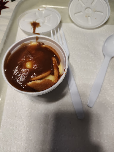 The banana fosters pudding is the single most redeeming factor but it also has its issues. It's very thin for a pudding. It does have vanilla wafers in it and they haven't been sitting in it a while (they still have some crispness and hold to them rather than being mushy) There is no bananas to be found. The banana fosters topping was overwhelming on top until mixed in but it gives a nice cinnamon-y flavor to the pudding. Best part of the meal.