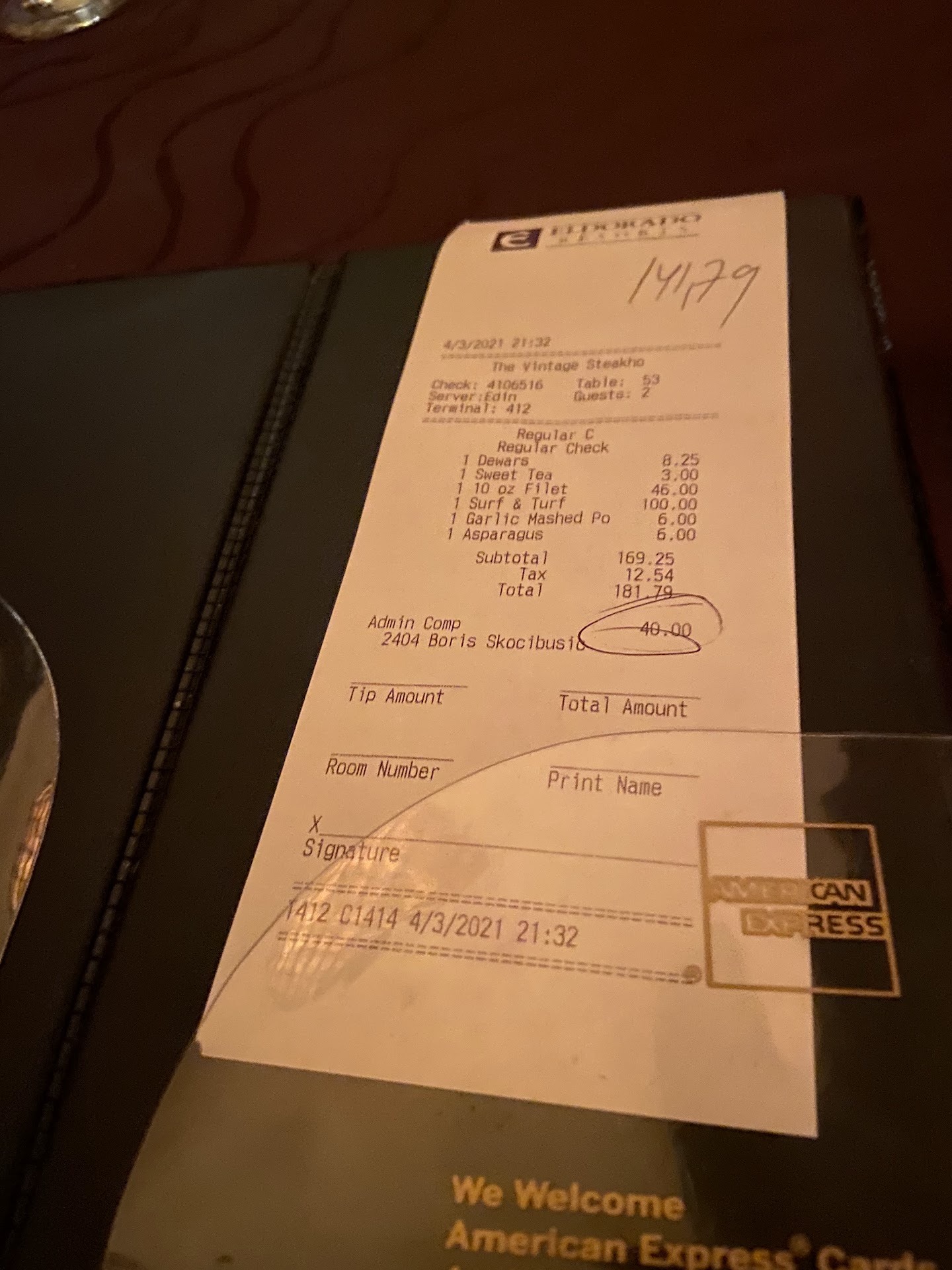 After reading recent reviews, my husband and I were excited to try this place out. Arrived early for our Sunday reservation, sat immediately. The host, bryan, was pleasant and inviting. Once sat, our waiter (can't remember his name but it began with a e) appeared to be nice at the beginning. We ordered our appetizers which was the crab cakes and the quail & grits. My husband said the crab cakes were just 'ok' and I've never had quail so I'm unsure of taste & texture but they were very dry to eat. I wasn't a fan of the cheese grits. My husband ordered the rib eye, medium with augratin potatoes and I ordered the surf & turf (medium well) with garlic mashed potatoes. My steak came out super dry & charred (burnt). My lobster was like I was chewing a rubber tire. My husband's ribeye came out well done. We told the waiter (quietly) about our meals and that's when things turned from bad to worse. He took our meals came back with a very strong aggressive attitude. Telling me to pick something else to eat. I told him that I ordered what I wanted he flat out told me 'That's the way the chef said he cooks, if you don't like it I'm not going to bring you another one out'. I was floored. After being humiliated by this waiter... I told my husband to forget it, I don't even want to eat here anymore. As we stood up to leave the waiter tells my husband ' you still have to pay for the appetizers' (in a very humiliating way in front of other patrons). We walked to the front and asked to speak to the manager which happened to be bryan. As I'm talking with Bryan my husband is paying for the apps. The waiter walks up to us crosses his arms on the counter staring at me with a smirk on his face. Bryan apologized and mentioned he wanted to correct the situation but he had to talk with his manager and he would contact me within 24-48 hours. Took my name and phone #. This was on Sunday 9-11 5 days ago. And I have yet to hear from anybody. If we're going to pay $135 for the surf and turf then I expect to have it cooked to MY LIKING. Same for my husband's steak. And for this waiter to embarass us the way he did was absolutely unprofessional and uncalled for. We ended up ordering food from the noodle bar where Victoria was super nice. The food was OK but just her customer service will make us go back before ever stepping foot back in to the vintage. The blind tiger around the corner from ballys has some great food with superb...