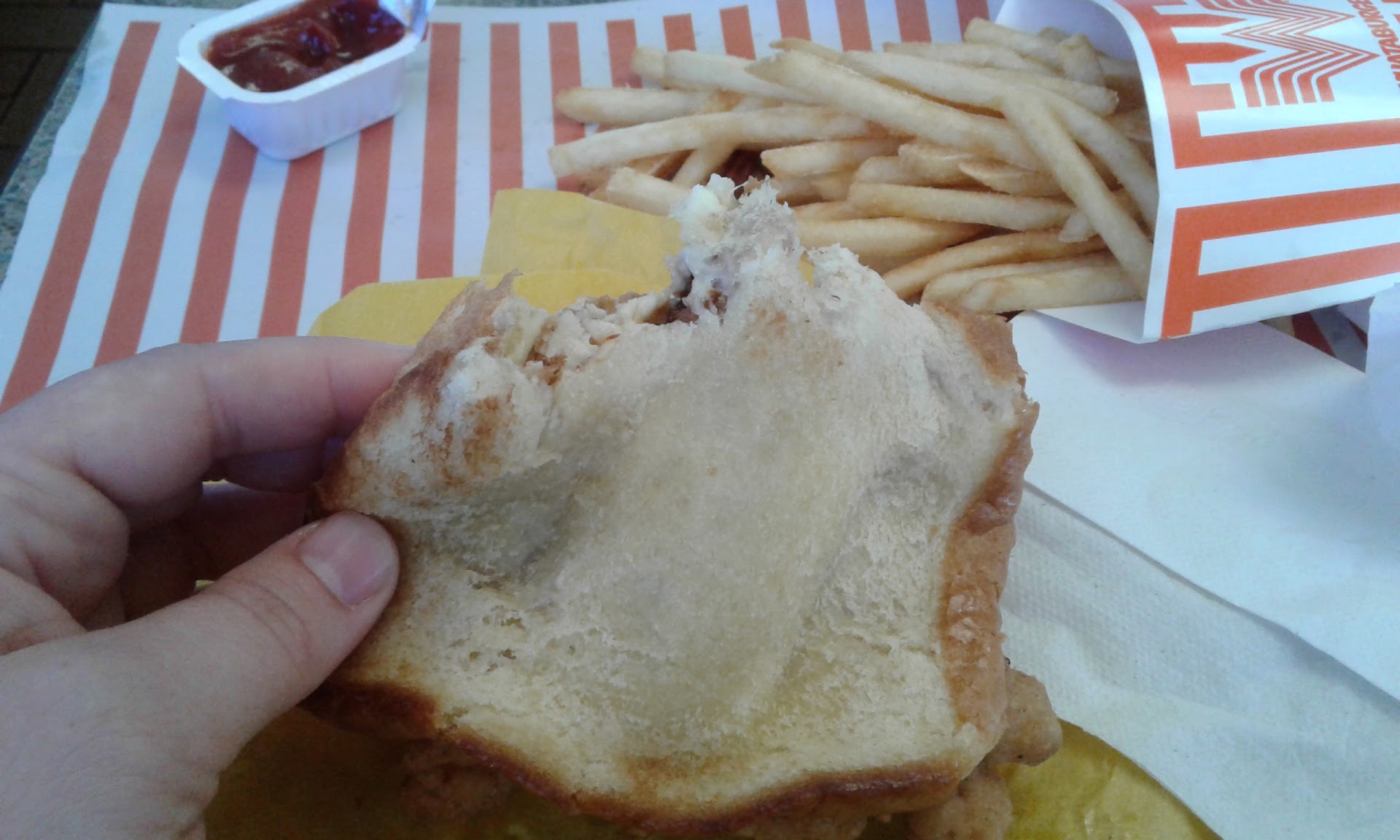 Ā Ā Ā Read moreThat was the first Whataburger, that I have had since I was a teenager in the early 70's in Shreveport La...Being an older man now, I tried to eat that really big and tasty triple burger, man was that a huge burger...lmbo...It literally took me two sittings to conquer it, but I prevailed...The taste was on point and took my taste buds to a whole nother, other level...The team there were friendly and fast...Thanks guys for the memories and keep up THE GOOD WORK... by the way, this is not a complaint, merely an observation, why don't fast food burger places not put mayo or whatever on the bottom bun...that first bite was reeeealy dry and hard to swallow, but the wisdom of this old man asked for extra mayo to undry, and rectify the situation...had I not asked for it, you for certain WOULD NOT be getting this very honest and sincere review...all fastfood burger joints are doing this...you guys should step up and be the front runners...food...