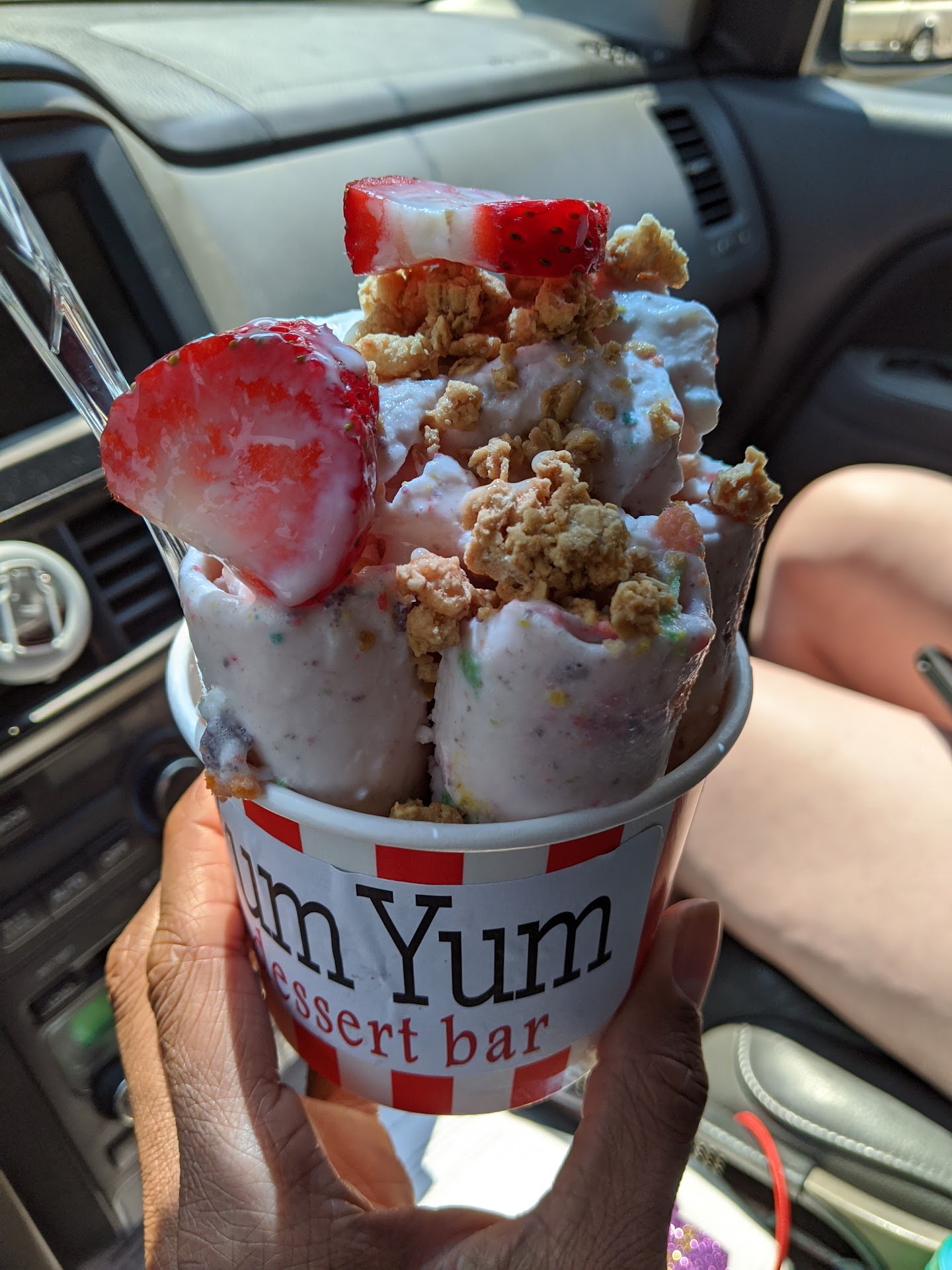 So this was my first time here and for 7 bucks I guess you are paying for the experience of watching them and the person I had didn't know what he was doing so you get this cup and you can pick from alot of mixes but be in mind when they roll it the bigger the roll the less you get so I had 4 big rolls in my cup and the rest that was left over on the tray he just left it there another guy that was working working up there seemed like he knew what he was doing because he filled a cup up with rolls and then what was left on his tray he put on top of the cup so yeah for 7 dollars I won't be going back and the guy that made my rolled icecream didn't know the flavors so he kept having to look at a board to see what when in it so if you like high price icecream and you don't hardly get alot this is the place for you I only went because a friend of mine posted something about them and in the picture it looked awesome so I guess she got someone that has been working there...