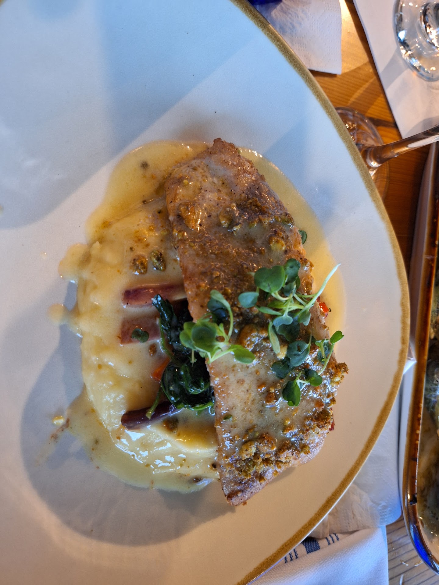 For the main course, my husband had the 60 day aged ribeye, I had the pistachio crusted fresh catch, which was halibut the evening we were there. We were both blown away by how perfect and flavorful everything on our plate were, it was hard to not eat every last bite because it was just so so delicious. Literally perfect