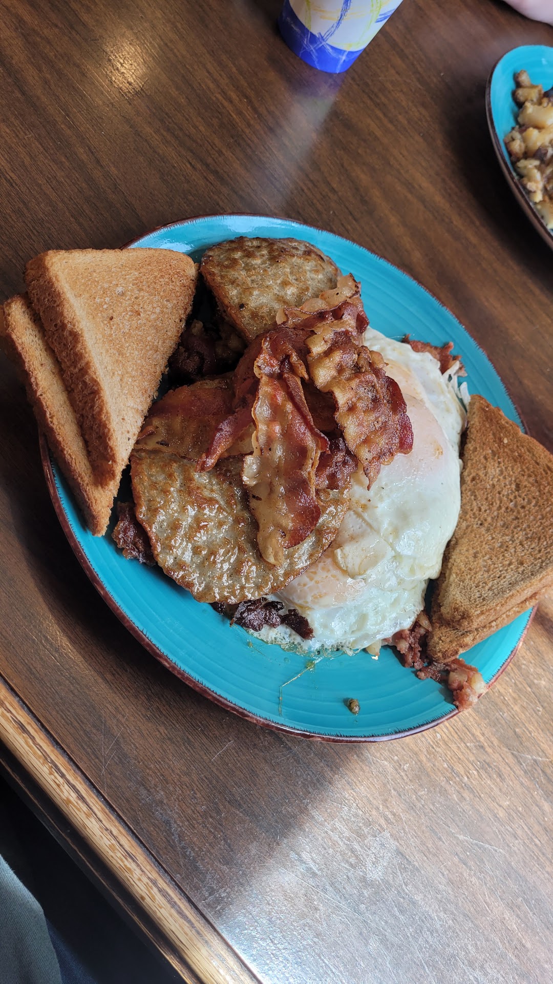 Today they plopped the silverware in a pile for us to distribute (and not the right quantity), never checked on us, visibly were talking about us with stink faces behind the counter after I’d asked for a glass of water. They never refilled our coffee, never gave us a take-home box after we asked for one, never said a word when they dropped a bill on our table. The food is great, but for two adults and two small children, breakfast was $80 not including tip! It turned out that a plate with 1 egg, toast, hash browns, and corn beef hash was about $16. We are very disappointed after this visit today and probably...