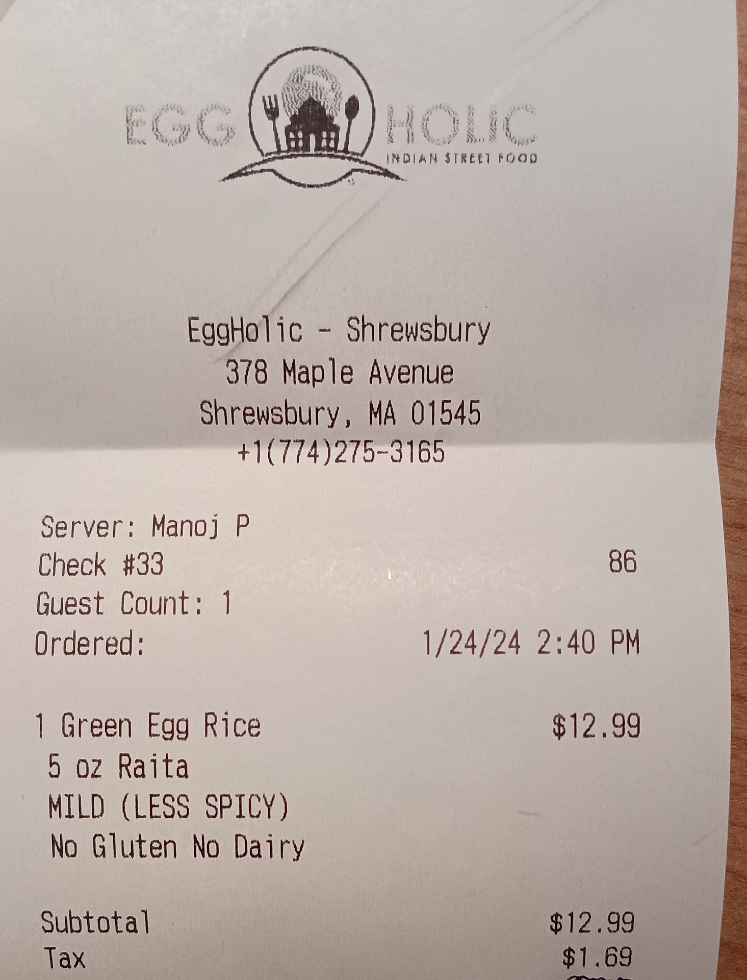 Read moreIf you have any allergies beware, receipt states the allergies clearly. I'm allergic to gluten and dairy. I repeated the allergies multiples times, he spoke to the kitchen, but then served the entrée with a side of Raita (which when questioned he said yes it had yogurt). Adding an update 24 hours later, my allergies kicked in not sure if it was dairy, gluten or all the spice but my tummy sure wasn't happy the next day.