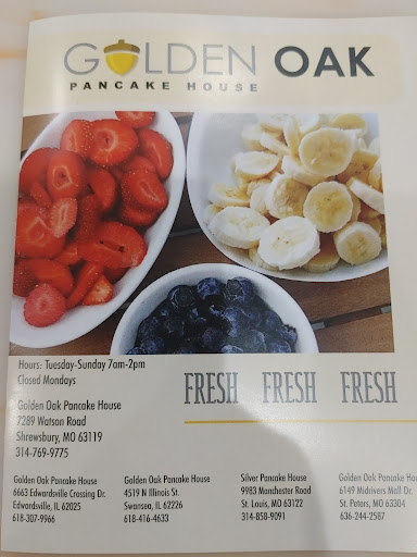 Ā Ā Ā Read moreMy first visit to the Golden Oak Pancake House started with me having to wait as the person I presume to be the manager, was helping an elderly person. After the wait I was eventually seated at a table in which the upholstery on the chairs were peeling which was not very desirable at all. I did notice that the upholstery on other chairs and tables we're bad but not nearly as bad as the table I was sat at the server who took my order did not understand enough English to answer my questions which was a problem, but I did make it work. Ended up ordering a two egg breakfast with turkey sausage and fresh fruit which consisted of cut up strawberries bananas and blueberries and pancakes. I ordered my scrambled eggs with American cheese and instead of scrambling the cheese in the eggs they just laid slices on top. That wasn't what I was expecting. The turkey sausage was good, the fresh fruit was fresh fruit. However I see why they are called a pancake house. I had the plain pancakes but they were so fluffy. The pancakes really were the star of the show. The service however was not. At one point the manager brought a coffee pot refilling coffee and literally walked by every table but mine even though I had an empty coffee cup ever filled every cup of coffee in my side of the restaurant but my own. On top of that my server was so busy because the restaurant is quite large that she was not able to do proper table touches for me. Compared to all of the other diners I was definitely sticking out like a sore thumb, don't know if that affected my experience, but I definitely know my experience was not good enough for me to recommend it to someone who called me while I was eating and I didn't even want to recommend the place to them even though...