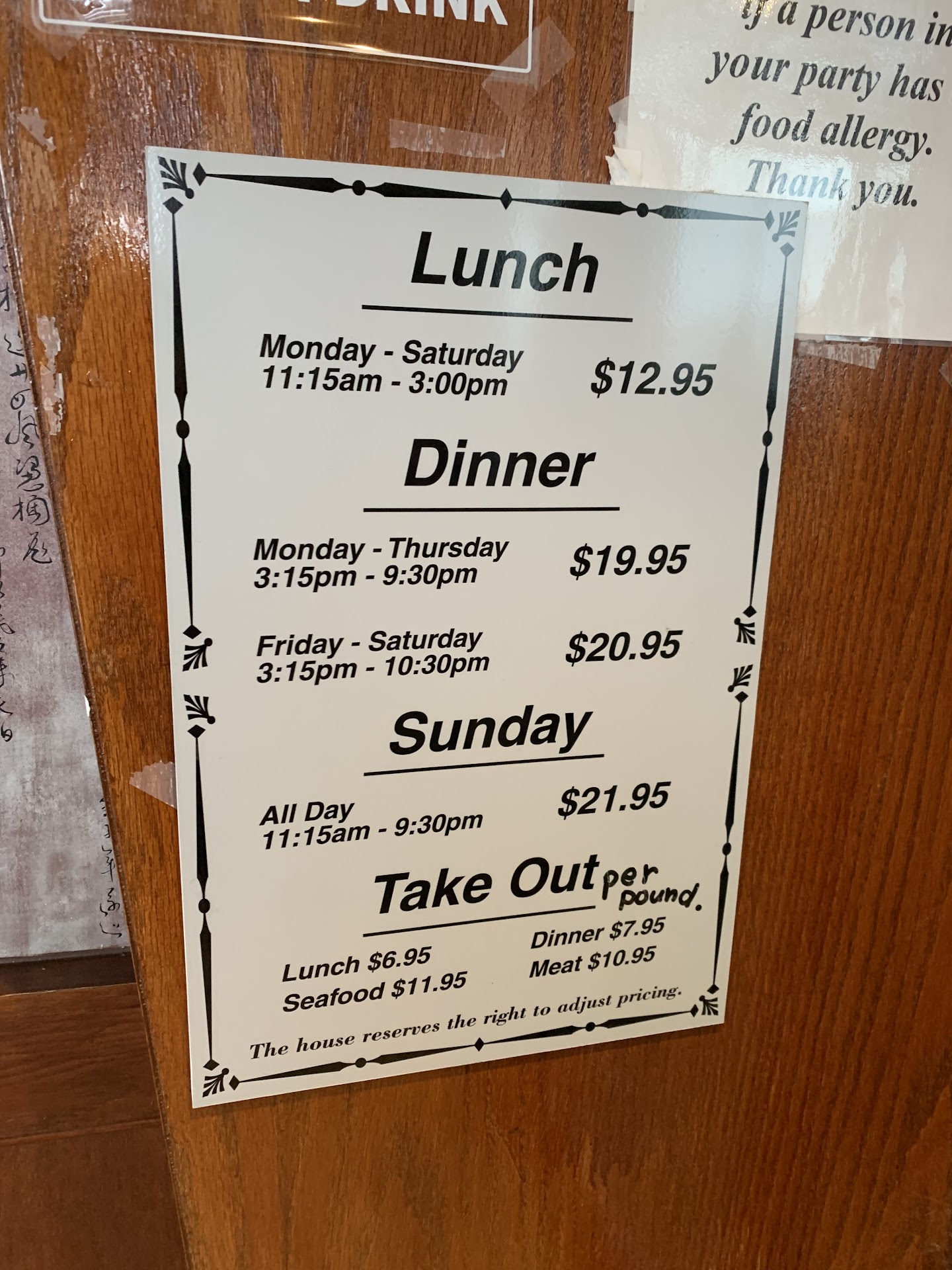 Read moreIf I could give this place a 0 I would. They donât deserve even 1 star. They donât deserve anyoneâs business. We have been to this place several times on random days of the week hoping the next visit would be better than the last, but they consistently disappoint us. The workers are extremely rude and dishonest. They tried to pre charge my credit card for a tip to the amount of their liking without my authorization, which they did not even deserve in the first place. And who the heck does that? I called them out on it and threatened to report them to the BBB. Only then did they nervously take it off my bill. This place will definitely screw the people over that donât normally check their bill. Based on other reviews, it seems to be a common occurrence that they are able to get away with. I was not surprised when I read them. Workers look like they donât want to serve you. They hover around and despite this you still have to ask multiple times before you get what you are requesting for. And when they finally do it, they do so with attitude and unhappily. As for the food it is very poor. Especially the calamari. It is old, cold, and I feel like Iâm chewing on leather. To make things worse the restaurant is overall dirty. Bathrooms are disgusting and smelly, and worse, itâs next to the food. Every time the door is opened the stink from the bathroom is wafting over to the food. Last but not least it is overpriced. Itâs nowhere near where it should be and it is not at all competitive with other Asian buffet restaurants. PLEASE do yourself a favor, avoid this place at all costs, and take your money elsewhere. I personally canât wait for this dump...