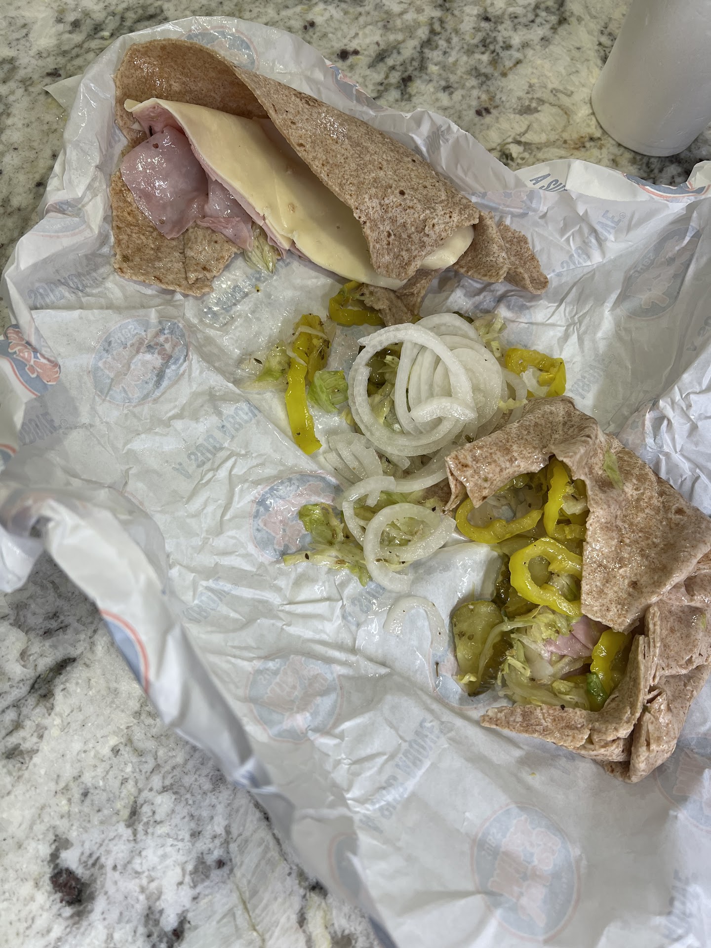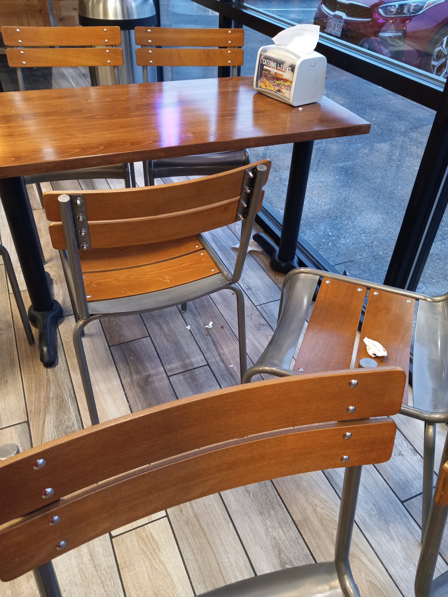 Read moreWe should have walked out as soon as we walked in when we saw staff using grinder rolls as swords. But no, we came in, ordered two hot grinders - a chicken Philly and a steak Philly. And then walked to the tables in front waiting for our meals. Please see photo of trash on chairs and under the tables. Then when we received our order, well I've never seen grilled chicken look like that (see pic) especially compared to the chicken Philly on their website. Their explanation was that "Well, that's the website photo." Four staff behind the counter and no manager in sight. Plus staff argued with us when we asked about the chicken's odd appearance. If i could give negative stars, I would. The young man apologized for arguing with us and did come out to clean while the young woman just gave attitude the whole time. And said, as if this explained anything "It's a shift change." Oh, did I mention we were the only customers? ...