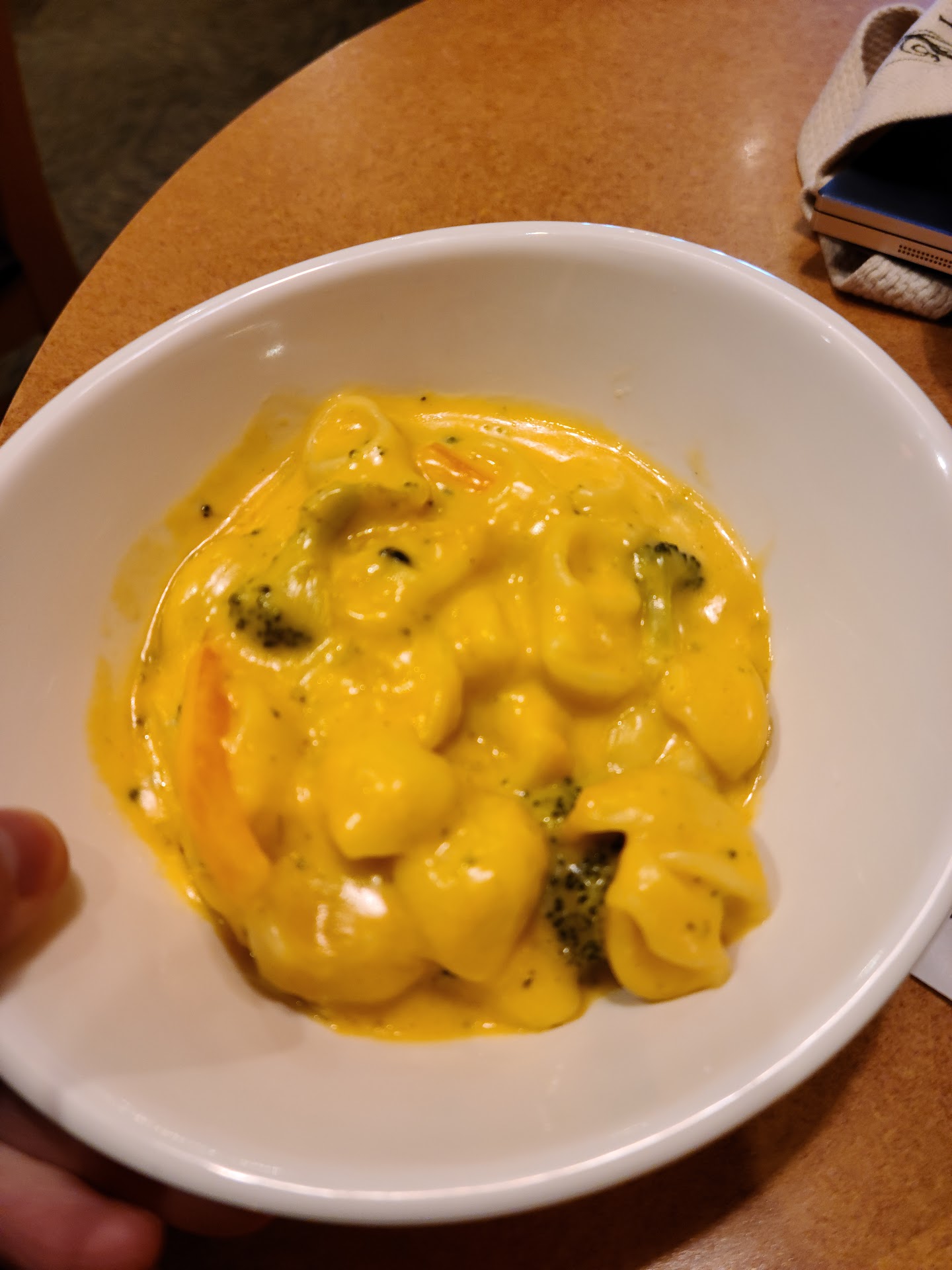Read moreThere was no one to help at the front (most likely due to helping another customer), and I and a friend were waiting for quite a while with three hungry children. I chose to use the kiosk (after seeing another customer who came in after me use it) to order our food. It wasn't as easy due to having to keep going back to find different sections and saying no to all the add-ons it kept asking about (one reason why I prefer dealing with a real person). We found a seat and the restaurant was clean and had a relaxing atmosphere. Food came in good timing, and the kitchen called out my name clearly (as well as a text my order was ready). The half portion salad was more like a side salad of about a fluffy cup of lettuce (which makes one wonder what a fullbportion would be like for the cost). The bread was good and the mac and cheese for my guy was hot and he enjoyed it. It was the perfect...