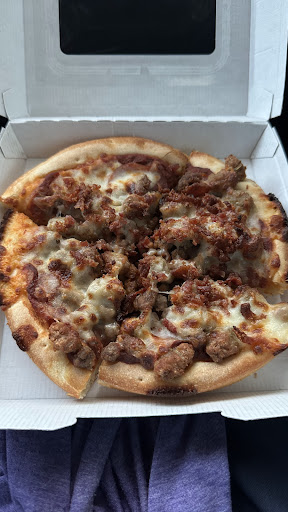 It was Friday night, they were busy, best pizza, and super friendly staff. Stopped for gas and decided to grab a pizza, those ladies there were all like Energizer bunnies. Grabbed my order pretty quickly and was told about 30 minutes, one of those ladies asked if we were eating there or on the road and offered us plates. My family will definitely be back next time...