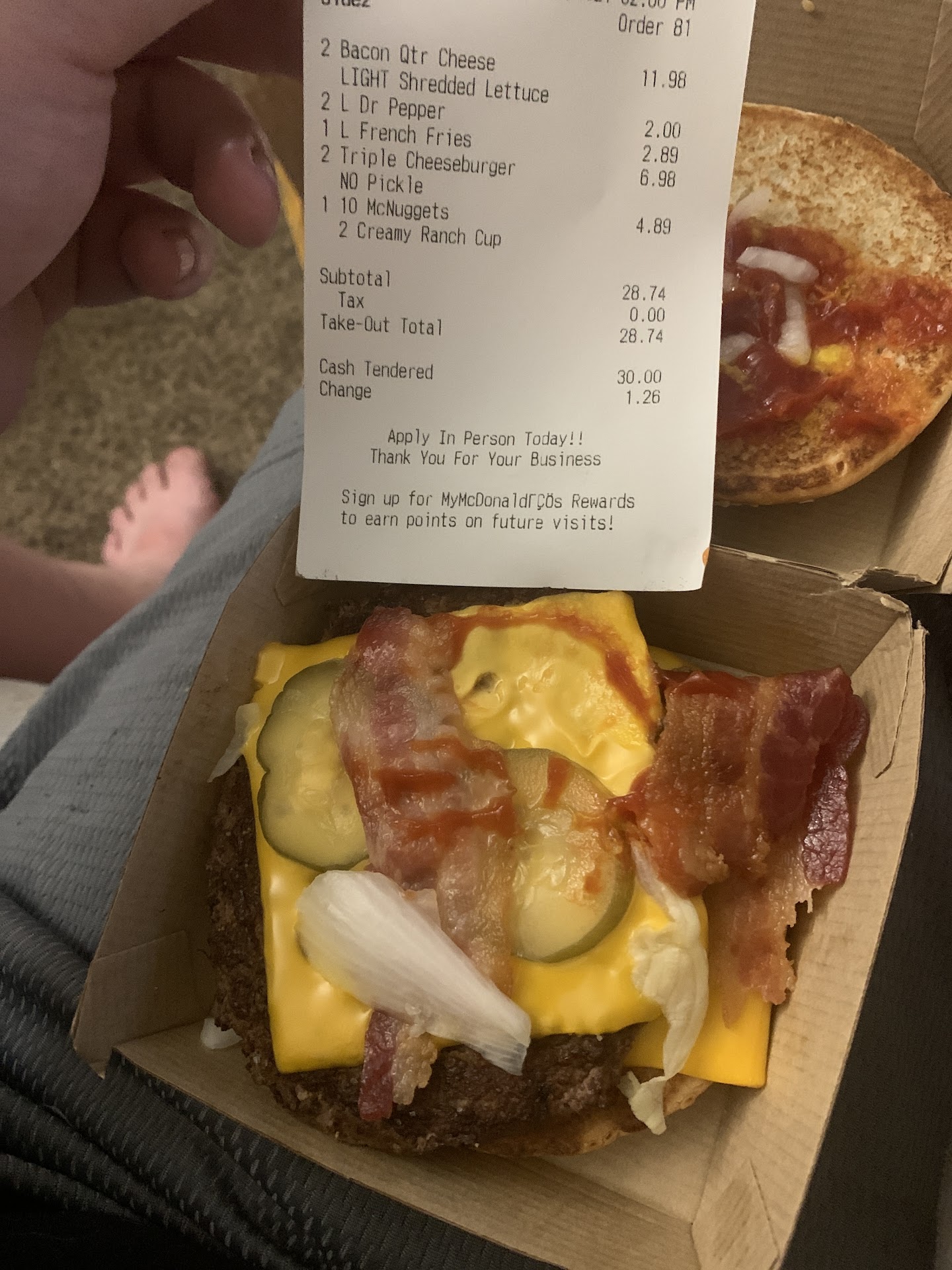 Read moreOkay, sometime last week. I went there for a few items for my brother and myself via drive thru. My brother got a triple cheeseburger meal w/ no pickles and a Dr. Pepper. As part of my order I got myself a Chocolate Shake and a Qtr Pounder plain added bacon and Mayonnaise and a 10 piece nugget to munch on throughout the day. What tickled me off was I was given a vanilla shake instead of chocolate. Went inside to get chocolate. Got it. Then I got all the way home. Got my sandwich out. Both top and bottom of my bun cover in a huge amount of mayonnaise that I had to pretty much toss it. My brothers sandwich had pickles on it. Not two but 5 pickles on it. Today Aug 29, 2021 I went to order for me and my brother again via drive thru This time 2 Triple Cheeseburger w/o pickle. One was a meal the other just the sandwich. No meal. I got myself a 10 piece nugget, and wanted 2 Chicken Deluxe’s light lettuce, no tomato and added bacon. I got all the way to my brothers place again. Handed him his order. To no surprise there was pickles added to it. I got my sandwich out and was amazed that I got TWO Qtr Pounders. And then looked at my receipt not only did it say Qtr Pounder on it but it also light lettuce. There wasn’t even lettuce on it. In other words half my order was right half is wrong. This location needs a big improvement. Needs better listening skills. Would not hurt to repeat orders back as well. This photo will show that there wasn’t even lettuce on the sandwich even tho it’s on receipt. I’m sorry but I won’t eat...