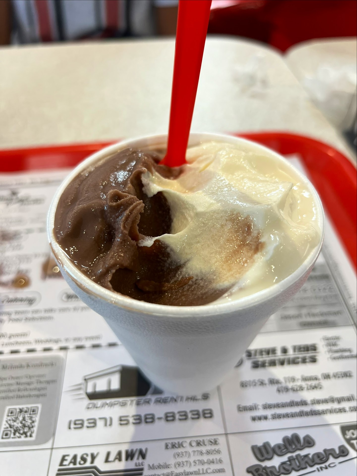 Despite the poor service, I enjoyed the food. I had the combo number two with fries and a Coke Zero, and I also tried a chocolate and vanilla malt, which was very refreshing. I would consider returning to this restaurant for the food, but I would probably only do takeout due to the disappointing service. I hope the restaurant can improve their employees' attitudes because good service is as essential as good food. Additionally, I noticed a sign in the back of the restaurant that said "The Funhouse," but the employees there didn't seem very happy and looked ready to finish their...