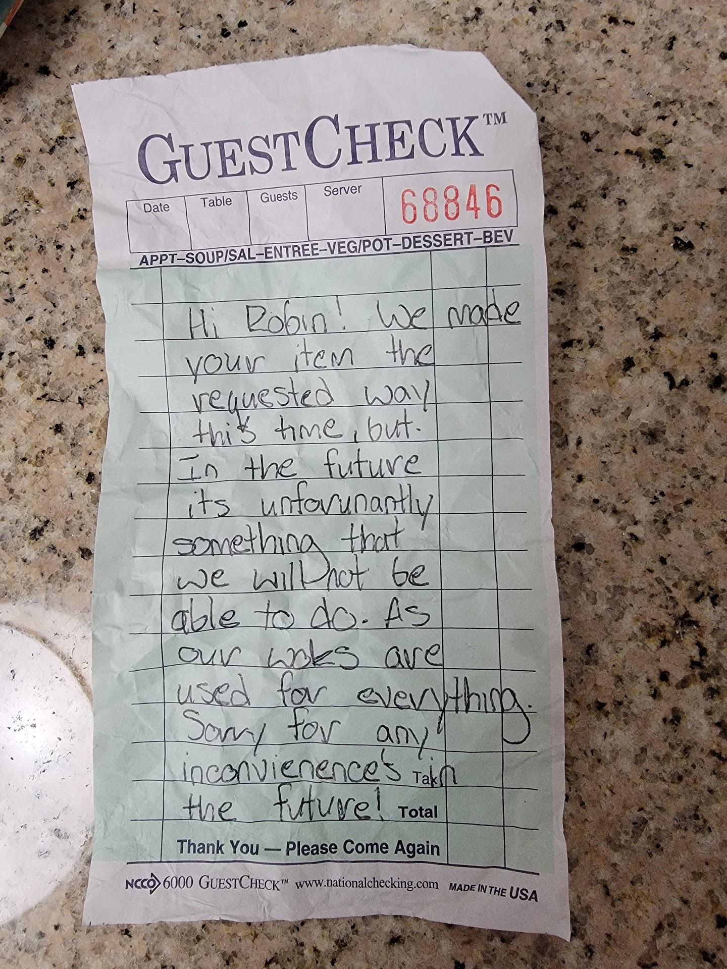 Finally, after receiving the check we saw nobody at all until after sitting at our table for about five minutes, got tired of waiting there, and went to the register, waiting a couple minutes there as well before being rung up. The server jokingly mentioned about that not being great service. We politely shrugged.