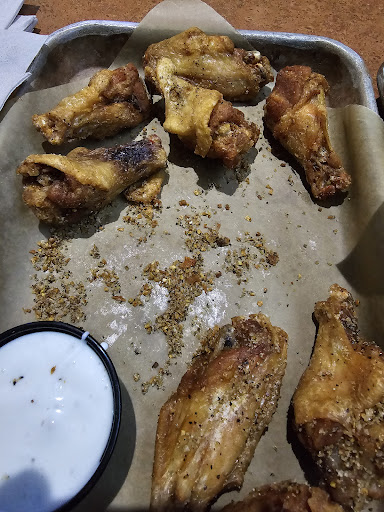 Read moreOn walking in we find that the entire facility smells like alcohol was spilled onto the carpet, repeatedly, and the carpets were never cleaned. There's something to be said about the smell of stale alcohol that is nausea inducing. Nevertheless decided to carry on. There was no one at the front so had to wait a couple minutes to be greeted/seated. Seems like they would have more robust staff on the weekends, but alas that was not the case. Our order was taken with relative speed, but then came the wait...I put my head down and literally fell asleep while waiting. Then upon waking, an unknown period of time later, motioned the server over and she stated, "oh I'll go grab that for you", referring to my order. This indicated that the food had been ready for some time and was just sitting there, and the server knew this and yet allowed us to wait while a stream of new customers were seated and served ahead of us. Then came the food - I am a fan of bone-in wings with lemon pepper seasoning, but correct me if I'm wrong in that the seasoning is supposed to be on the wings rather than the majority on the plate. It's dry rub, not dry chicken, however in this case it was the chicken that was very dry. My only solace was the copious ranch sauce that I slathered the wings in to make it edible. Also, for some odd reason, there is a basketball in a display case...in the kitchen. Will not be...