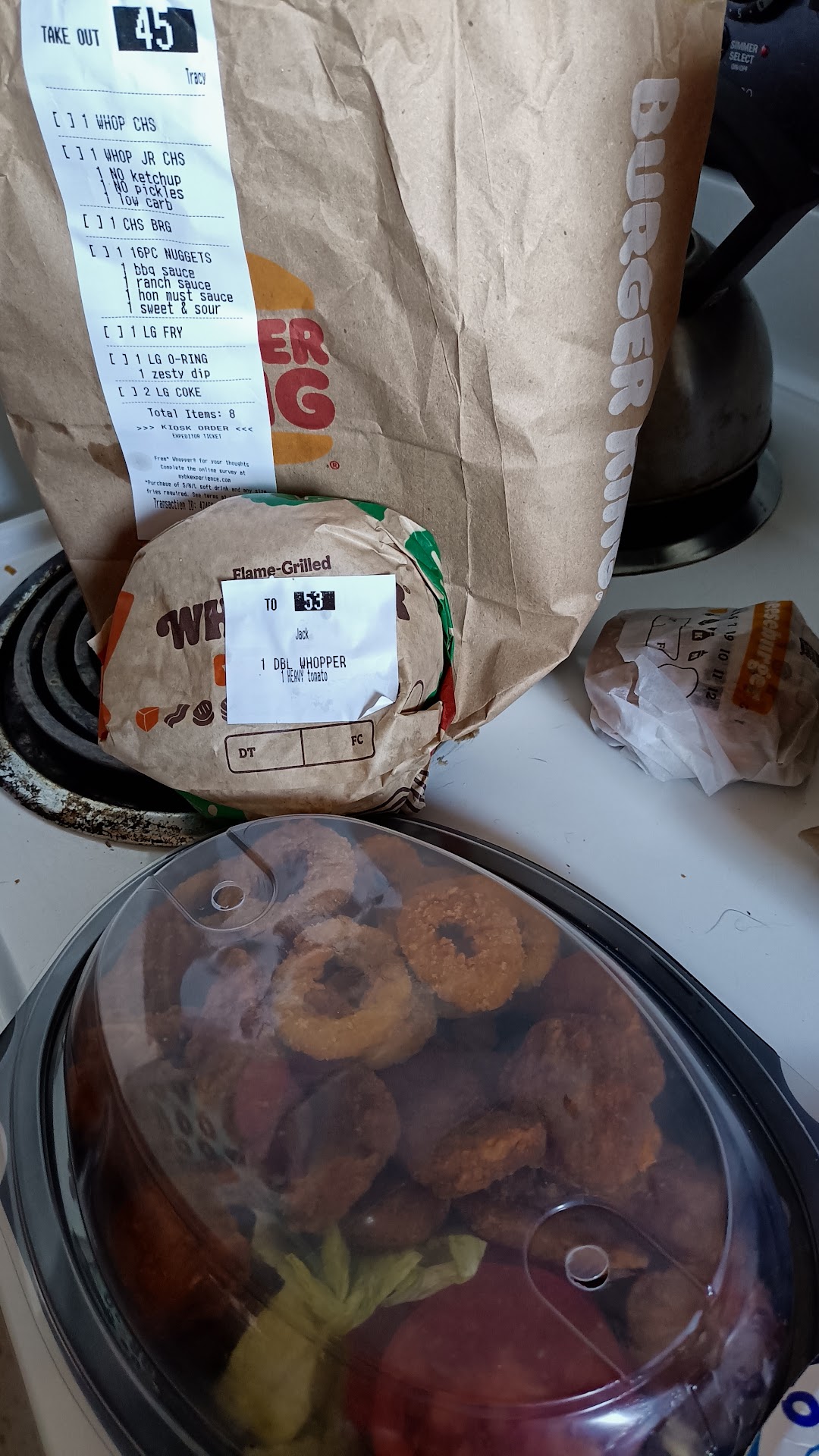 Read moreSo tonight I went to Burger King to get dinner for my family. I ordered 4, 2 for $5.00 Whoppers (a total of 8) and 3 Large Fries. Well I made it half way home (which I live out of city). I checked the 2 bags and realized I had only received 2 Whoppers and 3 Large Fries. I turned my car around what was supposed to be a 30 minute trip, at that point turned into an hours trip. I got back to the Burger King and asked them for the correct order. Thinking to myself, (they can't mess this up a second time), I didnt check the bags the second time. "I SHOULD HAVE". Instead of getting the 8 Whoppers and 3 Large Fires, I instead received 7 Whoppers and somehow 4 Large Fries.... How do you mess it up twice... It's one thing to make a mistake and mess up once, it's another to do it but twice... I'm disappointed in the customer service I recieved. I didnt go back because then it would have been an Hour and a half trip and this Burger King just proved to me that it is not worth me wasting that even more gas. The worst part is the first time they messed it up and I came back, the lady at the window had the nerve to tell me (I have to charge you more for this), I'm thinking to myself (No apology, no I'm sorry just I have to charge you more for this). With no apology and not comping my meal for my gas or nothing. Shocked is not even the word for how I feel. I'm willing to bet that the service is so bad that the Social Media Manager or Store Manager won't even attempt to contact me to address this issue...