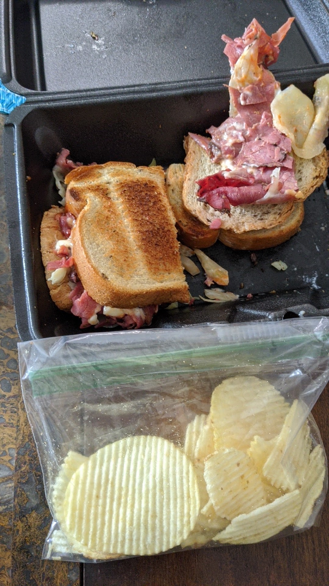 Read moreI know it's a beloved treasure of SV but I must say, paying $12 for what looks and tastes like a homemade sandwich is sadly disappointing. We had Reubens with what tasted like pastrami rather than corn beef, cabbage pieces instead of sauerkraut. Sandwich was cut in threes, but it was one and a half sandwiches with toasted white bread. It was decent but what can you expect from a mom and pop shop that's been open for so long. I'm sure I'll get evicted from town for this bit it's too much not to complain. I passed it forever without thinking of trying it and the day came to give it a shot. First and last time for everything. Schlotzsky's has fantastic and Big sandwiches for the same price and chips don't come in a zip...