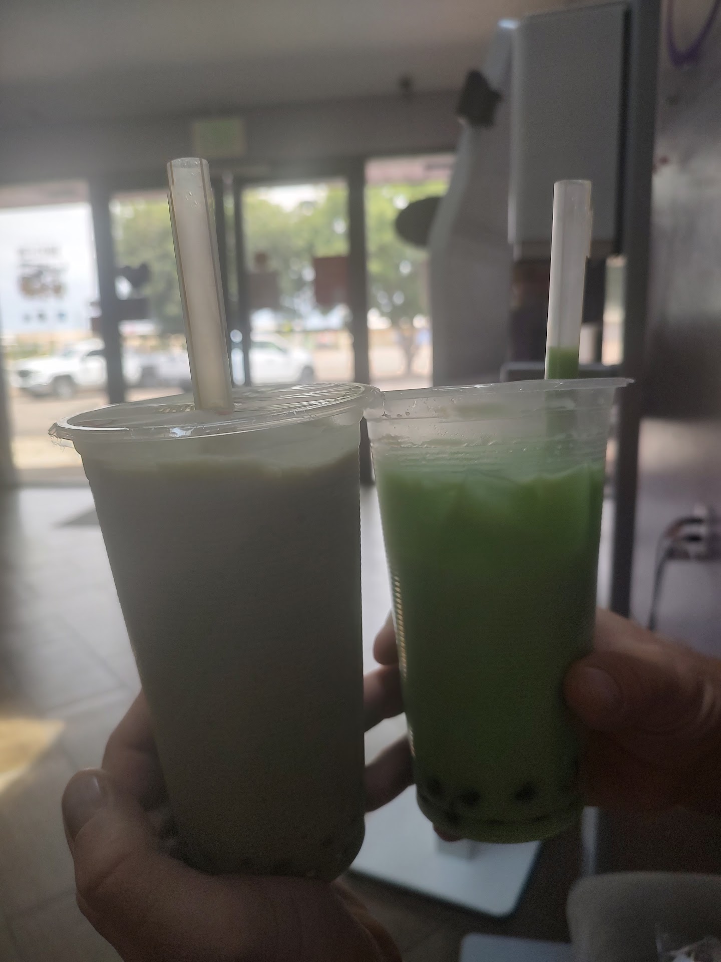 We ordered 2 large Boba milk teas. One was a matcha blended with passion fruit popping bubbles and it was delicious. The other was a honeydew over ice with tapioca bubbles. They were out of the jelly kind. The honeydew drink had a mild but pleasant flavor. The tapioca was warm and even with the ice in the drink it took time to become cool. The tapioca pearls are chewy and sweet. My husband had this drink and preferred my matcha. He said next time he'll get blended as well.