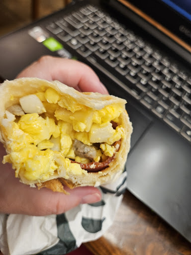 I also had the breakfast burrito which I believe was egg cheese and sausage but definitely had potato in it too. It was mid as the kids say, kind of basic nothing terrible nothing to write home about. Satisfied my hunger but probably wouldn't get it again.