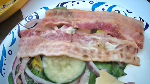 If the bacon on my sub was cooked then I sure don't know why, it is LIMP, does NOT look like it has been cooked and when I went to bite it was like rubber! All for an additional $2.00 for 2 LIMP UNCOOKED bacon!! NO I will NOT be back here. Then the server kept dropping the food on the floor then picking it up and putting it on the my food. RUDE female!!!! Never again...
