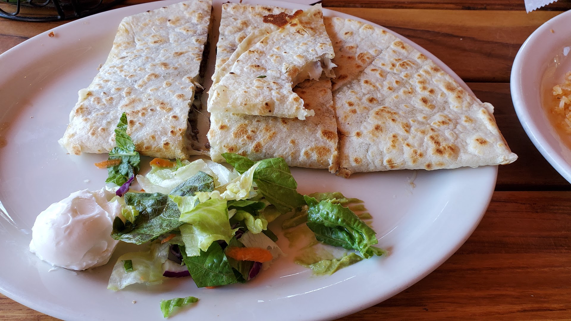Two orders for us. One was carne asada quesadillas with a separate order of rice and beans and the other was chilaquiles.