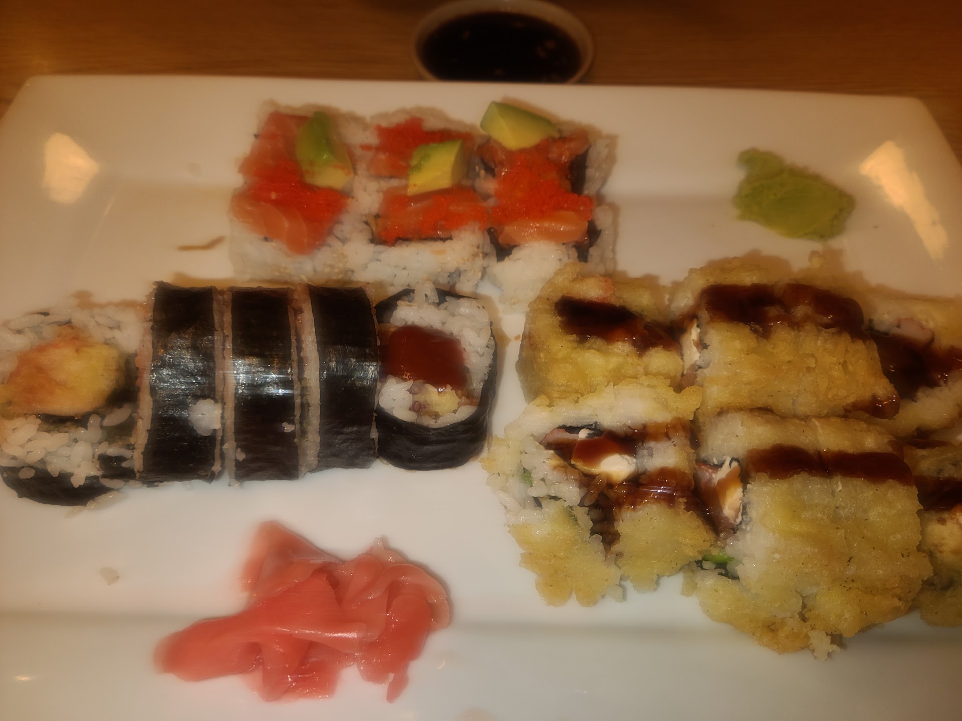 Read moreFood: The sushie rolls were sticking to each other and weren’t easy to grab with the chopstick. Sushie rolls fell apart very easily when grabbed with chopsticks or hand. Ordered Octopus Taki for kids. The menu not the server mentioned that they put wasabi in it when they serve wasabi on the side. I greatly enjoy Japanese sushie but me and my kids didn’t enjoy the experience. Service: The server needed a day off. We felt being rushed to take our orders as it was our first time there. Another server came and took our empty plates that we need to put our sushie in and our chopsticks and said he was going to bring new ones but never did. I had to go ask for chopsticks and we had to put our sushie in the tiny small soy sauce bowl or pass the plate around with the sushie rolls cause nobody brought our individual plates. My kids still wanted to eat more sushie but the server gave us our bill when we didn’t asked for it nor did she check if we wanted to order more sushie before handing the bill. We left totally unsatisfied with the experience. Atmosphere: The restroom was extremely dirty with a toilet full of poop and toilet paper. There were people sitting right outside the male restroom. I don’t...