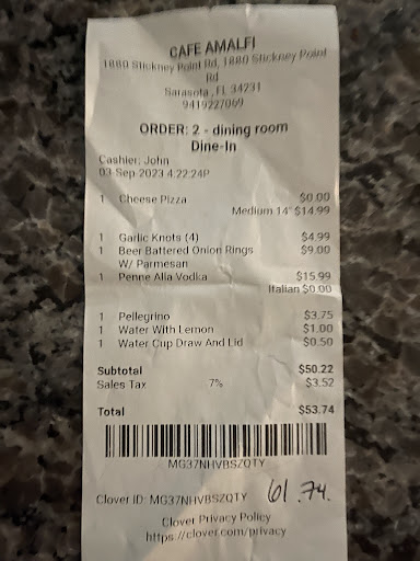 *ALERT: Do not order from here!! Rude, disrespectful, stereotyping owner Due to the current health pandemic, I wanted to support local small restaurant owners. I googled restaurants open near me and found one that was open with decent reviews; Café Amalfi. I placed a $68 online order though the app on their website for ‘pick-up’. When I picked up my food, I drive home and handing out food to people, noticed I was missing half of the order (I also should have checked before I left). When I drove back to the restaurant, the owner was rude and insinuated it was my fault they didn’t pack all the food together property. Strike one.