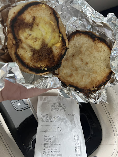 We just ordered two burgers from Five Guys Sarasota (Tamiami/Stickney Pt.). At $10 for a burger, you may think that you get something at least edible, maybe even appealing in taste or presentation. But not at Five Guys. Believe me when I tell you that the actual product you are buying is nothing like the photos. You will get a greasy, burnt, and squashed burger in aluminum foil, that - at least in my opinion - is not fit for human consumption. No one should be forced to eat black burned food, regardless of price or location. No pride of workmanship, no pride of ownership, no love for the product. I did not dare to feed this to my family, so I took it back. The manager did refund my money (sidenote, they did keep the tip ;D) on the basis that the burgers were burned beyond salvation, which she saw, but she was borderline dismissive about the squashed and disgusting presentation as a whole. She told me that this was Five Guys Standard (what a joke) and shrugged off my suggestion to use cardboard or paper instead of aluminum foil for the sake of conserving resources (and possibly helping the appeal of their products) by pointing a corporate policy. Fine, I'm not going to save the world or keep landfills smaller by fighting corporate myself, but what this conversation was missing entirely, was empathy, understanding and acknowledgement. So I got my money refunded, and yes, they do keep the original receipt and refund slip - again, citing corporate policy. I wonder why? Fortunately, the receipt is in the attached picture, in case anyone from Five Guys Corporate ends up taking ownership for their product or the people that they have running their franchises. I did give their corporate office a call about my experience and am waiting for a response. I'll certainly update my review if I hear anything from them (I have little hope), so my recommendation stands: There are three other burger places at the same intersection with better and more appealing food, as well as more committed employees, at half the price. Go there, avoid Five Guys in Sarasota and save yourself the disappointment and the money. It's a lot of show and story about how great their food apparently is, but little substance at a premium...