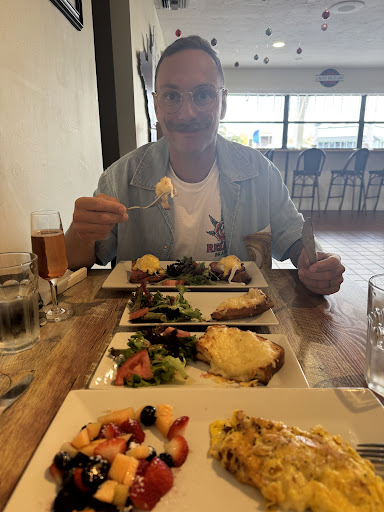 From the moment we walked in, hungry and ready to conquer the menu, we were welcomed like friends. Arnaud, the owner, is a gem of a human being, radiating French charm and hospitality. And Laura (I think it was Laura??) is a mimosa magician—she convinced us to swap the usual for a blueberry liqueur and sparkling wine combo, and WOW. Life. Changing.