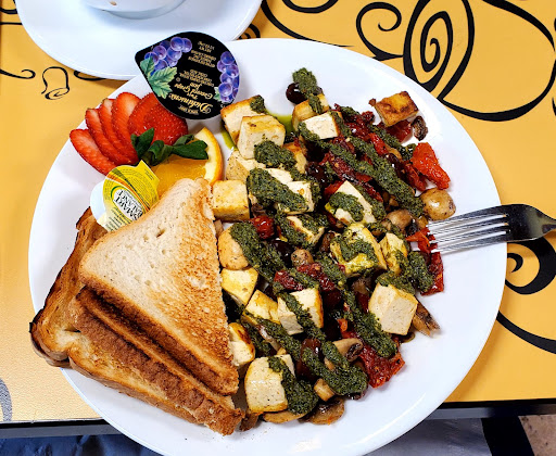 Read moreI was so happy to find this great spot! This cozy restaurant has an amazing menu. There are not many places that not only have a large amount of vegetarian/vegan options as well as meat eater options that are both done exceptionally well. We started with fantastic coffee ( I am very picky about my coffee), which a large assortment of milks were provided. Every non-milk option as well as fat-free milk up to heavy cream. I had the Mediterranean tofu, it was cooked perfectly and the flavors were fresh and delicious. My table mate had an egg sandwich, and they couldn't have been more pleased with it. Also the portions were huge. In addition, the staff was friendly and attentive. In fact, we spoke to the owner as were were leaving as he was putting blankets at the outside tables, as it was a cool day, which we thought was incredibly incitful and considerate. He was very pleasant and obvious puts a lot of heart in his business and it showed. I will definitely return to this restaurant whenever I am in the area. I have since returned to this restaurant and the food and service was just as amazing as the first time. I highly recommend the Ruby, I don't even care for beets and this dish was a delicious. My mom had the Reuben and said it was one of the best she ever had. Definitely make sure you take the opportunity to go to...