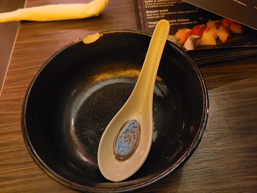 Read moreI entered front door alone and stood at host stand for about 5 minutes while 3 employees also stood there ignoring me. One woman was on the phone taking a to go order and 2 young men standing there waiting on her to ask questions. In the meantime, 2 other people enter and stand behind me to in the same general area. By the time lady on phone gets off (we're all waiting on her), she looks up and says, "party of 3?" No, no! I'm here on my own, not with them. So, apparently only one person is trained to seat customers and only she is allowed to greet customers, as the 2 guys didn't acknowledge my presence - incredibly bad first impression. I guess Missouri Health Department doesn't care if serving dishes are chipped. 2 of mine were chipped - the bowl the miso soup was in had a huge obvious chip and the little dish one mixes wasabi and soy in was chipped. This next part is a general complaint applicable anywhere - I wish parents would train kids not to screech in eardrum piercing screams in public places. There were 2 tables with 2 young kids doing exactly that. The food itself was good and decent, no complaints there. Waitstaff needs to be trained in table etiquette - such as not setting down the bill on a table full of dirty, unbussed dishes. My empty, chipped miso soup bowl sat on the table the whole entire meal - bad! When waiter came to set down bill he walked off not caring about my empty, dirty sushi plate. I gestured for him to take it away and he did, but I shouldn't have had to do that. Mediocrity reigns...