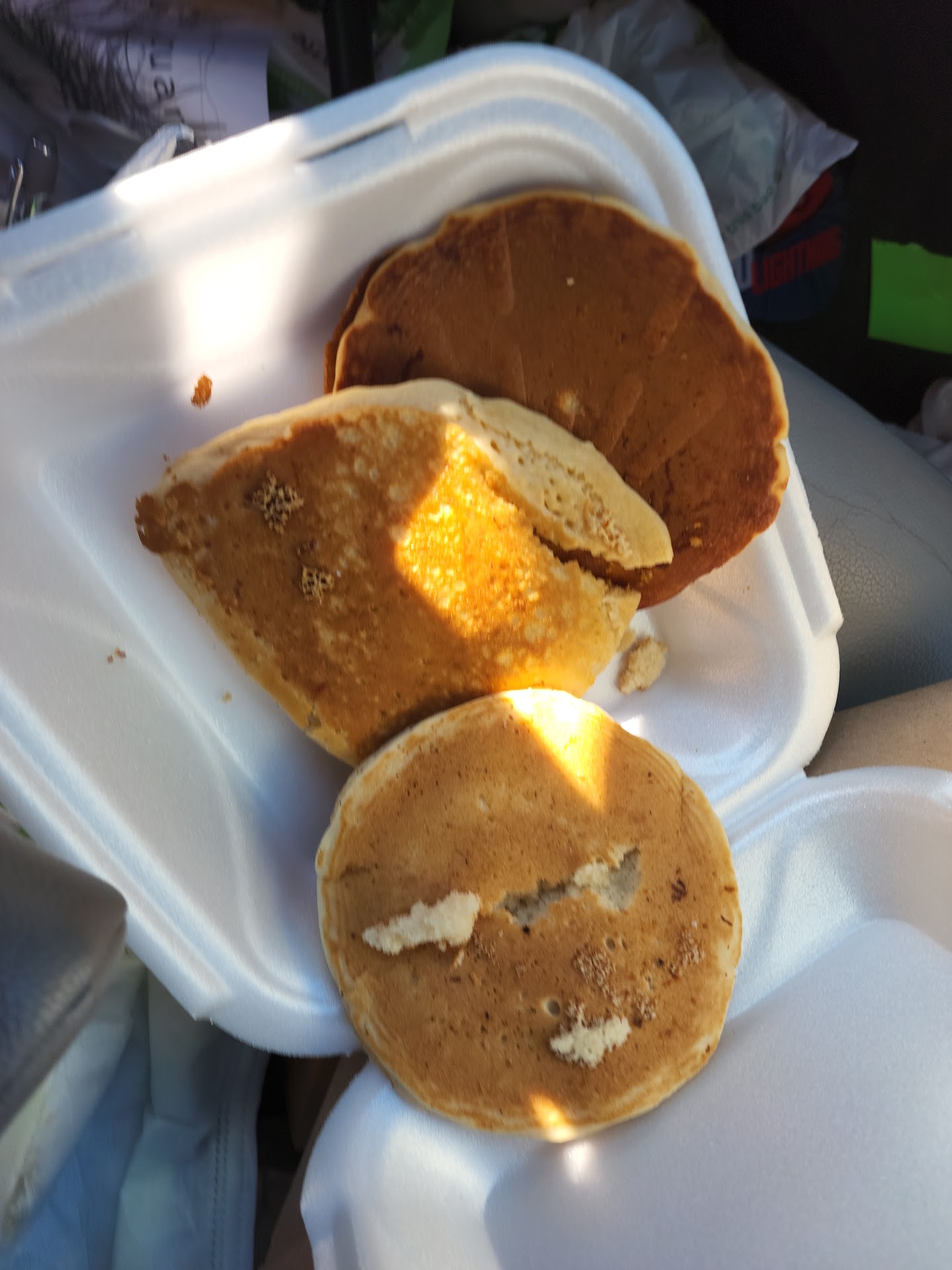 Read moreI can only think of 1 time I came to get pancakes and they were fresh. I never write reviews but this place is too new to the area to not care already. We don't have many options in siler city so please do better. I always check my pancakes when I am in drive thru because when they 1st opened I thought it was just honest mistakes everyone was learning etc. But someone picked these up and put them in the container they know for sure they wouldn't eat them. the corners was so hard. When I showed the guy at drive thru he said we have fresh ones down pull up and someone would bring them out. No apologies no wait time luckly id just got off work so i wasnt in a hurry. I would usually pull out and pull into McDonald's. But I decided to check this time because I don't want to waste money. Just last week I was there got home to find a hair in my biscuit. I drove back and the lady remade the whole order and offered me 2 coupons for sweets. She asked if I wrote a review I said no. She said it was the 2nd complaint of the day about hair in the biscuit. It's time to train and hold these people...