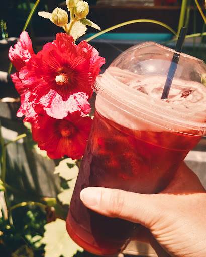 Javalina Coffee House, Silver City, New Mexico, from Las Cruces, New Mexico, Wednesday morning, 21 June. For two – dark-roast drip, with raw sugar and real milk; freshly brewed, iced hibiscus tea, with raw sugar.