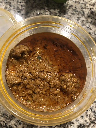 Andhra chicken curry - Same situation no salt, no spice, no taste, old and uncooked chicken and smelling too. Chicken piece was big and was red inside. Curry came with 4 piece of chicken and trashed 3.5 chicken.