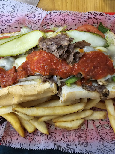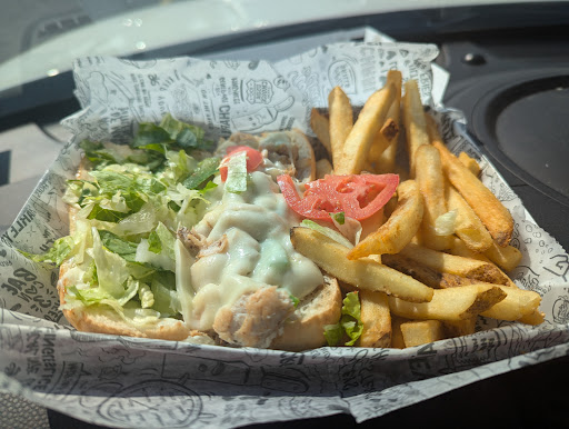 Read moreSooooo, first time trying this place. Advertising says they are the number 1 philly cheese steak in the world. Friendly staff, fast ordering and preparation. Got it to go with all the choices available, mayo, lettuce,tomato, peppers, onions, cheese. And the protein was the chicken. I got the small which comes out as a portion of the length of bread available. Nicely cooked potato fries and the sandwich served together in a large box to go. Accompanying the sandwich was a self served coke. Potatoes fried well in the vat. The sandwich was tasty but the ratio of meat to the sandwich was low . I can't say it was number one in the world but it does fill the hole. Thanks again...