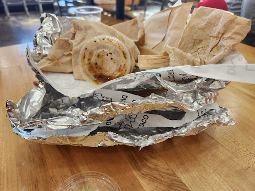 We were so excited that silver spring would be getting a district taco! It's clear from the lines on day two that there is a need for more variety here. First impression: It is so loud that anybody with PTSD will need to stay away. It's like a battle field with more shrill number shouting. There's an immediate anxiety upon walking in which is made worse by the metalic grinding of the benches on the concrete floor.