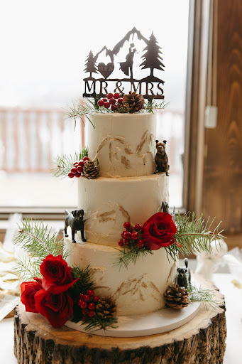 If you need a wedding cake that is not only so beautiful to look at that you donât want to cut it but tastes like heaven also, look no further and call Nicci!! We met Nicci for the first time during our cake tasting after we reached out and asked for red velvet cake options. She came with 3-4 red velvet cake options, I had no idea that a baker could do that much with one flavor. She had a red velvet raspberry cake sample for us, and after the first bite we knew that no one was going to top that taste! Nicci was absolutely wonderful to work with. I sent her so many pictures of cakes from my Pinterest board and with our creative minds and her wizardry in the kitchen, she made our dream wedding cake come to life. The gold detailing in the mountains on the sides of the cake tiers was amazing and the placement of the real red roses, greenery and cranberries, and our personal touches with our 4 dog figurines, was exquisite. The cake photographed so well, and Iâve included some of our dessert table photos here to share her masterpiece of our wedding cake! Highly recommend Nicci for all your baking needs or if you just want to seek her out in Breckenridge at an event for a...