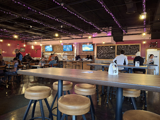 Read moreBefore I start I want to say this is completely based on the atmosphere and has NOTHING TO DO WITH THE FOOD because unfortunately I was unable to get that far. I hate to leave a review like this but it should be known especially by management/ owners. Closest I got to the food was the menu. I did take a look over the menu and the options looked great but very expensive compared to some of the other chicken joints around the area. I went in hoping to try a new place in town but I can assure you I’m unlikely going to go back. I sat at the bar and the bartender was quick and attentive getting me a water and a menu after that it was all down hill. First issue I had was the noise. The place is a very large open space with concrete floors so I can understand. But it is LOUD!!! So much so that I overheard the bartender and presumably the manager talking about putting on loud music to drown out the noise with more noise. Maybe block off a dining area with some free standing walls to block some of the noise from the bar and break up the echo factor. The other issue I had was the overall environment. Maybe it was a party I don’t know but the crowd was anything but appealing. I went in by myself around 8:45pm immediately I noticed the majority of the crowed was wasted. I’m not going to assume they were over served. But, as someone who’s worked in the service industry(server and bartender) for most of my life I would have personally cut off anyone within an earshot of where I was sitting at the time as they belligerently and loudly discussed openly what types elicit things they like putting up their noses. Even the people across the bar got in on the action yelling obscenities across the bar loud enough that the cook came out of the kitchen to see what was going on. I don’t mind people having a good time, but crowd management should be something you consider and if anyone is that drunk maybe step up and stop serving them. If you are going with your kids I’d suggest you go before 8pm or whenever the regular crowd rolls in. If you have kids this place would be your worst nightmare at the time I was there. Between the crowd and the echoing ping I couldn’t push myself to make an order and decided to walk out before the bartender came back to take my order. I really hope to try the food as the options truly look good. But I will do so from the food truck sometime this summer. Unless I hear about some changes I won’t be going back into...