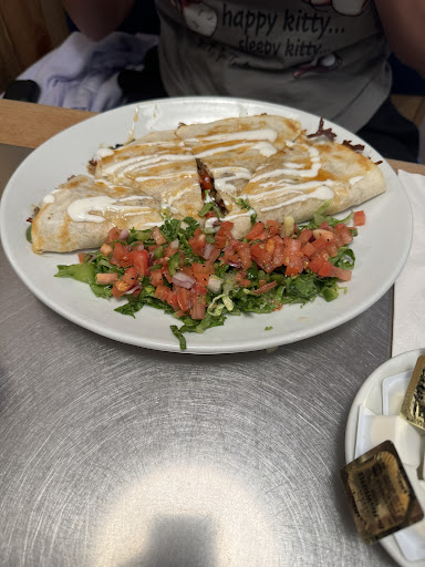 Got there just before 7 and waited outside until they opened right at 7. Nice guy seated us and a female server came to take our order for drinks right away. When she returned I asked her what a local favorite would be and she listed off about 8-10 items really fast. Didn’t catch any of it. I went with a salmon Benedict, and my daughter had carne asada quesadillas. We split a cinnamon roll, which we ordered to arrive before our food. The cinnamon roll was very large, and pretty good, but the $8.99 price was a little steep for something with no nuts and a basic glaze. It tasted like it was microwaved based on the very bubbly glaze on the plate, but overall okay. The salmon Benedict came with hashbrowns, which were stone cold. I cut to the middle to see if there was any warm parts inside, but there was not. The bene was somewhat warmer, but the hollandaise sauce had already started to set and was no longer runny. I got the server’s attention and told her about the cold hash browns- she asked if I wanted some new ones and I said yes, but half the amount of the first serving. She returned literally 2 minutes later with a steaming pile of perfectly crispy hash browns. A generous shake of salt and pepper and they were good to go! Delicious! This was the second time my daughter had been in (and we were there based on her recommendation) and she ordered the same thing that she had the first time. The carne asada quesadillas were just as delicious as the first time she had been in, according to her. We were out the door for almost $65 with tip. Was too expensive for a routine place to eat, but since we are not locals and only passing through, this was not an issue.