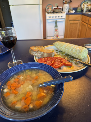 We live in Oregon City and whenever we make a trip south on 213, to Eugene or to the coast, we always stop at Fin and Fowl for lunch and for their grab and go case. I always get the ahi poke bowl (best poke bowl ever!!). I love that I can help myself to the grab and go case for extra seaweed salad, ginger, wasabi, sriracha, or soy sauce for my poke bowl. Husband loves the pork and rice. And the portions are so generous. We always have enough leftovers for another meal. The grab and go always changes, from chicken spatzle soup to lasagne and excellent desserts. By far the best carrot cake we’ve ever purchased. Also the best smoked salmon. (I love when they have smoked salmon bellies.) Our last trip through we were heading to our cabin on the coast for a quick maintenance trip. Got everything for dinner. I love that this restaurant also carries local bread and produce when in season. Photo is our delicious dinner provided by Fin and Fowl. Breakfast was toasted sourdough with smoked salmon and sliced tomatoes, all from Fin and Fowl.