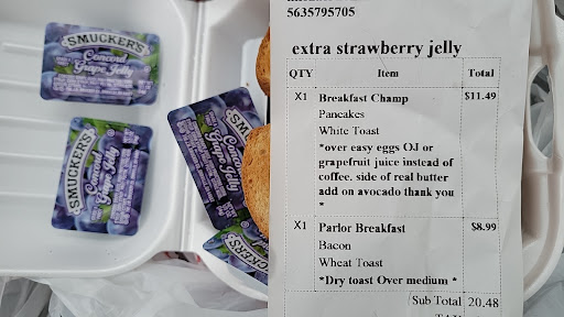 We are trying to give them the benefit of the doubt. It really wasn’t that busy for a small breakfast spot but they looked like they were short or didn’t have any runners because nothing seemed to be working. Waited another 5 to 10 min, coffee brought to the table with no cream or sugar and no mimosa or water. Waitress states she is waiting for the drink from the bar. Alright, can I also get that tab for our friends table before they leave and the cream and sugar. Ok I’ll be right back with that. Well then she was gone. We waited another ten minutes and then stopped a separate waitress that had been walking by and asked to talk to a manager. We waited, our waitress came to the table and asked us what we wanted. So this was the last chance we were going to give. I stated that I’d really like to talk with the manager, second time requesting, cream and sugar, my girlfriends mimosa and the bill for our friends table! The waitress tells us that they cancelled the mimosa, she doesn’t know why and states she will go get the manager.
