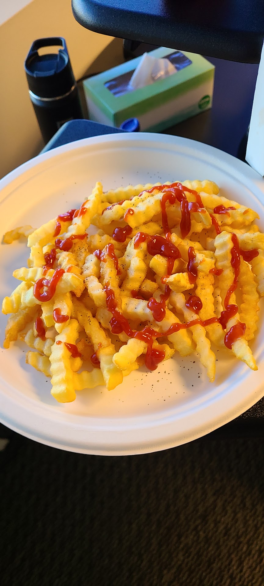 I came to this Del Taco location since I was in the plaza at Tmobile store and wanted some fries. I made the order through the app since I was thought it would make my food be ready faster. After I walked out of the tmobile store, I went back to the Del Taco app and tap that I'm here. When I walked inside the store, the worker said they just started making the fries so I would have to wait. The good thing about this is that the fries will be fresh but the bad thing is that the wait was about 5 minutes. So ordering through the app doesn't mean anything until you actually got to the area where Del Taco is and check in. The fries were delicious, seasoned well and fresh. The interior of this Del Taco is better than most that I seen. Bathroom is also outside so it's not inside the store.