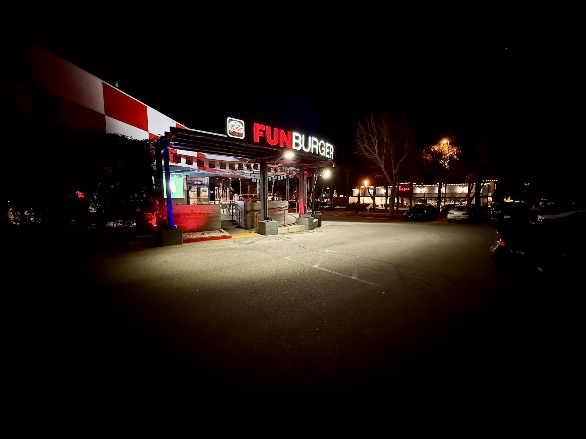 From what was previously a Hook Burger comes Fun Burger here in the local community. I had experienced the former establishment's fare and found it quite appealing. The service offered by Fun Burger provided a wonderful expansion. The interior has a simple, but good metropolitan feel with concrete walls and cushioned seating along the edges. It's the kind of place where construction workers and other heavy labour types would go to enjoy big food that fills them up and tastes good, too. Against such an adult perspective, it has a good family aspect in providing games, both video arcade and that of coin prizes. Four large screen TVs are available for a variety of entertainment including political discussions, local and world news, talk shows and sports. Music also creates a good upbeat ambiance for the dining experience. The food itself, saved for last, comes as highly satisfying. Both beef and chicken sandwiches are available from a simple menu with around half a dozen varieties for both, with my own personal experience being a simple double beef burger with cheese, plus an excellent sampling of the triple fun fries in original, sweet potatoe, and spicy Cajun, the latter being particularly enjoyable. Malts and shakes are also available in over half a dozen flavours. The service itself was very gracious, both from what I believe was the owner/manager and that of the accompanying staff, who were all pleasant in their communication and promptness. I thank them for providing this dining experience with a 4.9 of a five-star rating. Why so? To declare anything perfect, there remains no chance for improvement, one which will be discovered in its own time by the respective staff. May they continue to provide wonderful service to the local community, and have both peace and prosperity in their business as a burger shop. Thank...