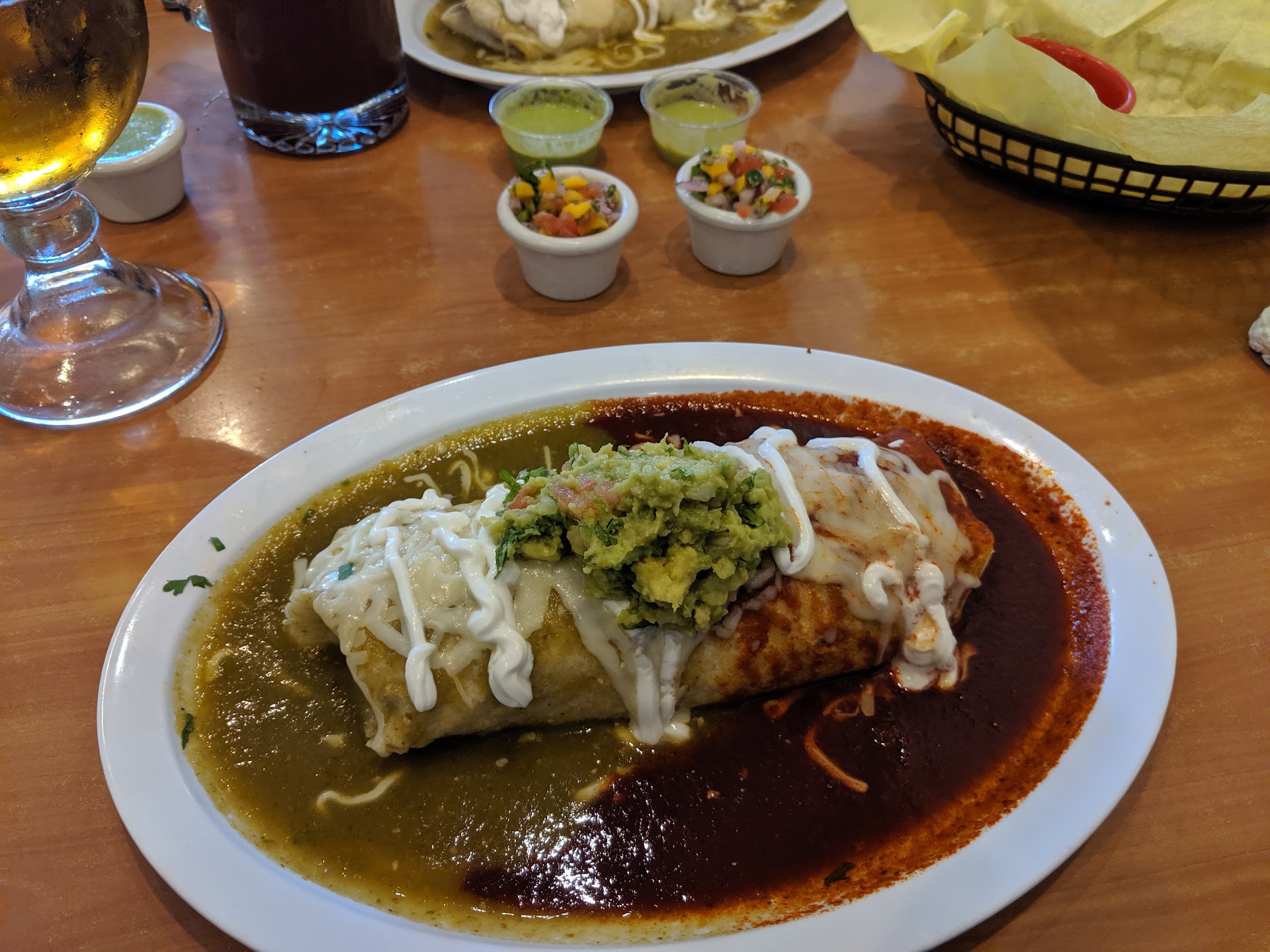 Food was delicious. Salsa and condiment bar was on point. Everything was flavorful and perfect portions. It is a bit on the expensive side but well worth it. Restaurant is clean, service is fast and friendly, drinks are strong and food is, again, delicious!