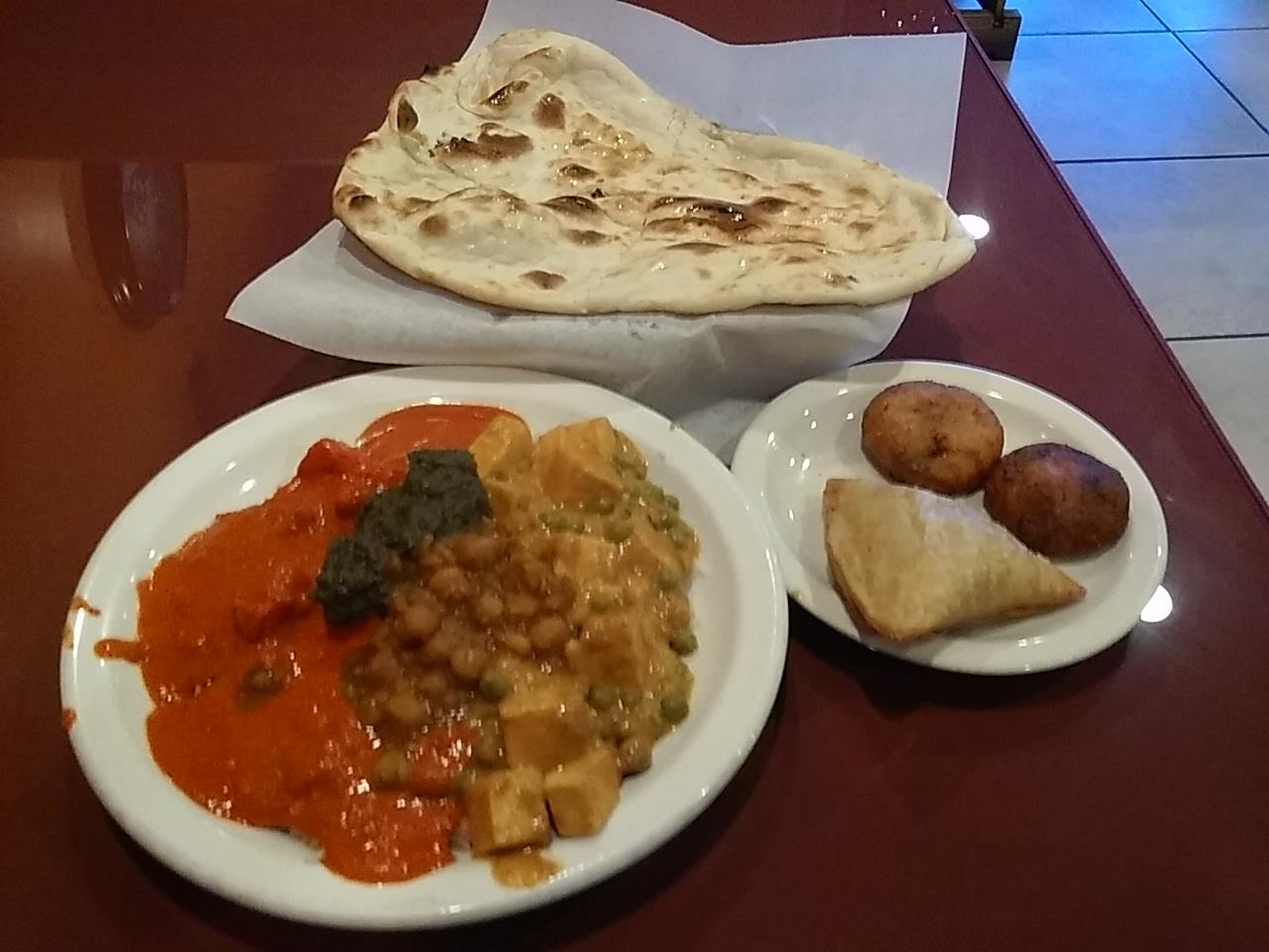The saag paneer was another standout—the paneer was soft and fresh, paired beautifully with the spinach. The garlic naan came out warm, soft, and full of flavor, making it the perfect companion to all the curries. And the samosas were extraordinary—crispy on the outside and fresh inside, especially the chicken cauliflower samosa.